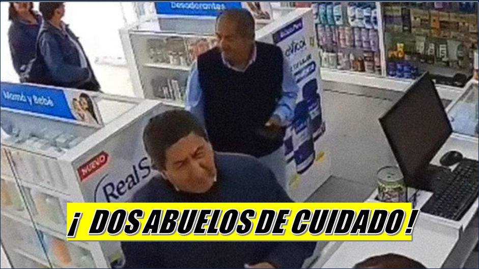 El video —que ya circula en redes como pólvora— muestra a los llamados “abuelitos elegantes” entrando con toda calma a una botica del barrio. Nada de prisas ni miradas sospechosas… cada uno tenía un papel que cumplir en su plan casi teatral.