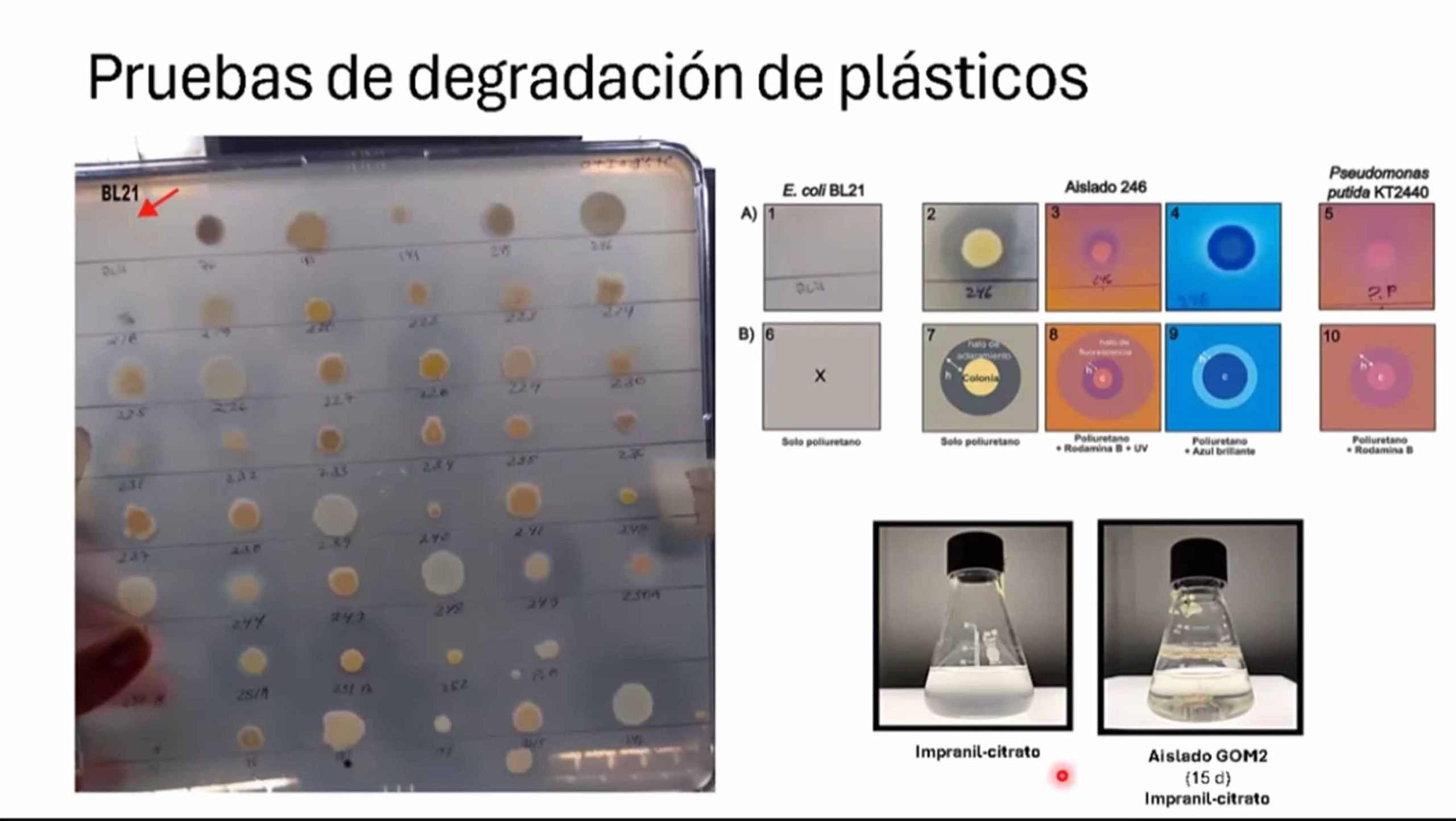 Las científicas Liliana Pardo López y Nallely Magaña Montiel explicaron que el interés principal del estudio fue encontrar una bacteria capaz de degradar plásticos sin generar grandes cantidades de sustancias tóxicas, uno de los principales problemas asociados a los procesos actuales de degradación.